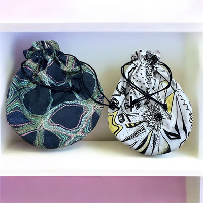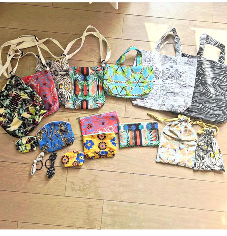 アメリカ人アーティスト、アシュリーがデザインした 生地(きじ)でつくった、せかい で 一つ の グッズ です。