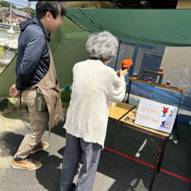 まと に 当(あ)てると 景品(けいひん)か が もらえるよ。