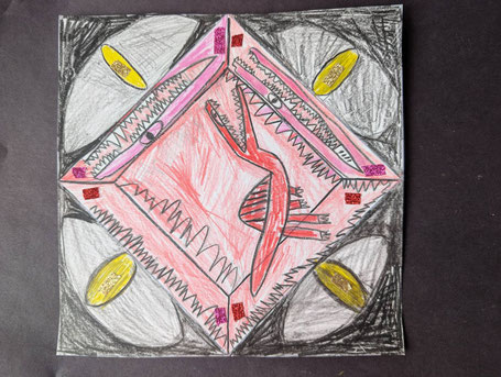 子どもたちは、じぶんの好きなものを描き、 じぶんだけの「キルトブロック」をつくります。*キルトブロックは、四角いアートのパーツです。